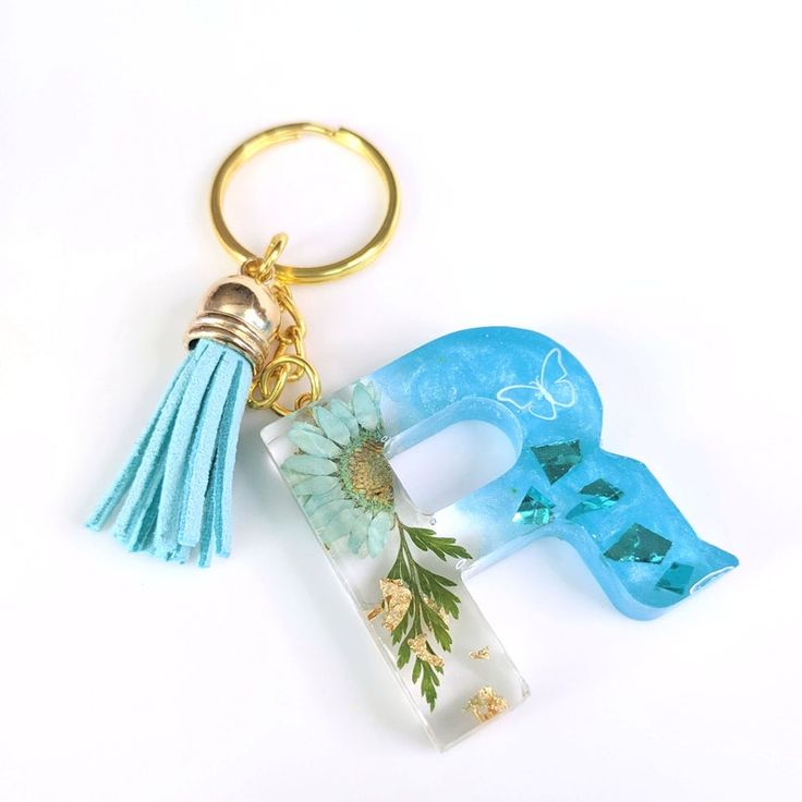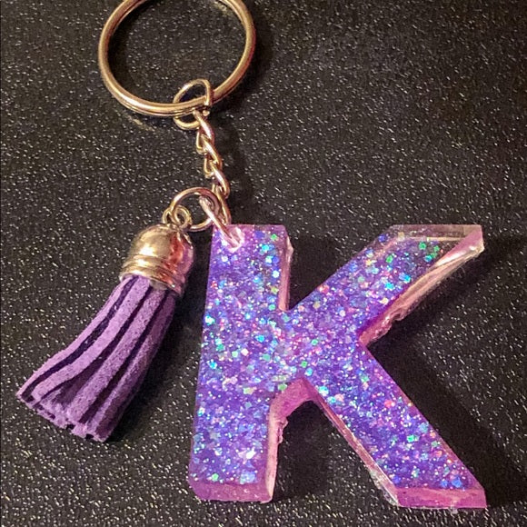 Adorable Initial Keychain with coordinating tassel. Color variations create a uniquely personalized gift. Made out of clear epoxy for a shiny durable finish.