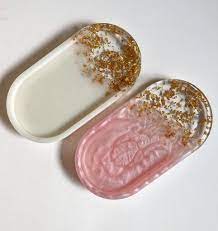 Beautiful handmade trinket trays perfect for holding rings and jewelry. Lovely little gift made with resin and choice of glitter colors, dried flowers, gold/silver flakes, and/or mica powders.