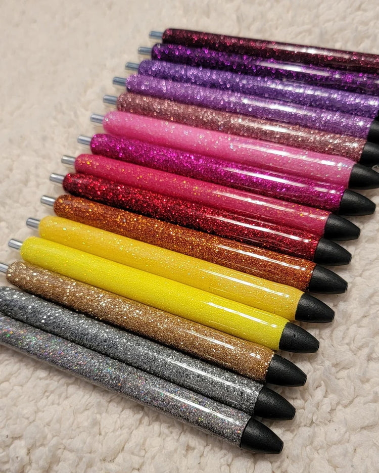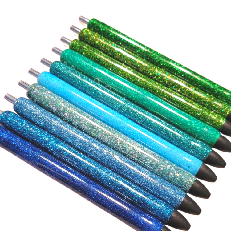 Simple yet gorgeous single-color pen in choice of solide glitter or non-glitter base. Many color choices available for a quick, hassle-free pen design!
