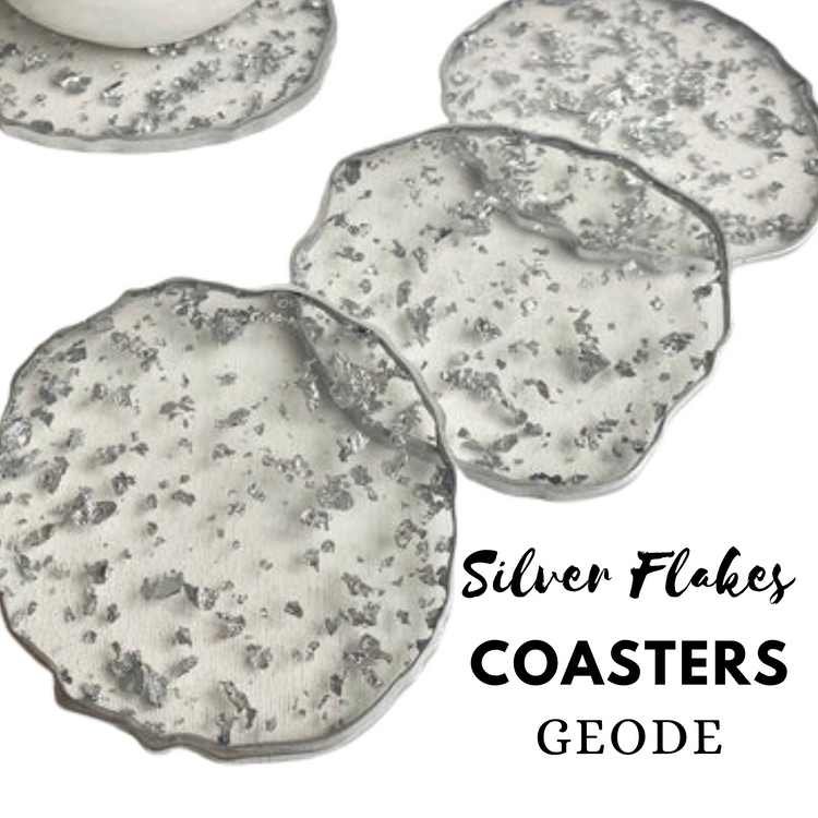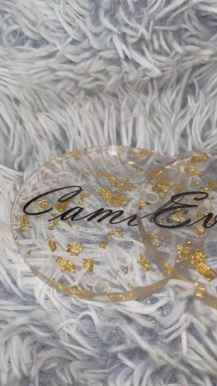 Gorgeous and classic coaster design created with clear resin with choice of gold, silver, or rose gold flakes and coordinating leafing on edges. Name personalization will be in black lettering unless otherwise noted. Option to order set of 4 coasters or 6 is available. Please note that sets come in same design with different names. Please specify in "Personalization option on sets (Name/quotes only)"